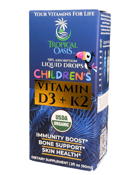 Vitamin D3 + K2 Drops for Kids - USDA Organic Tropical Oasis