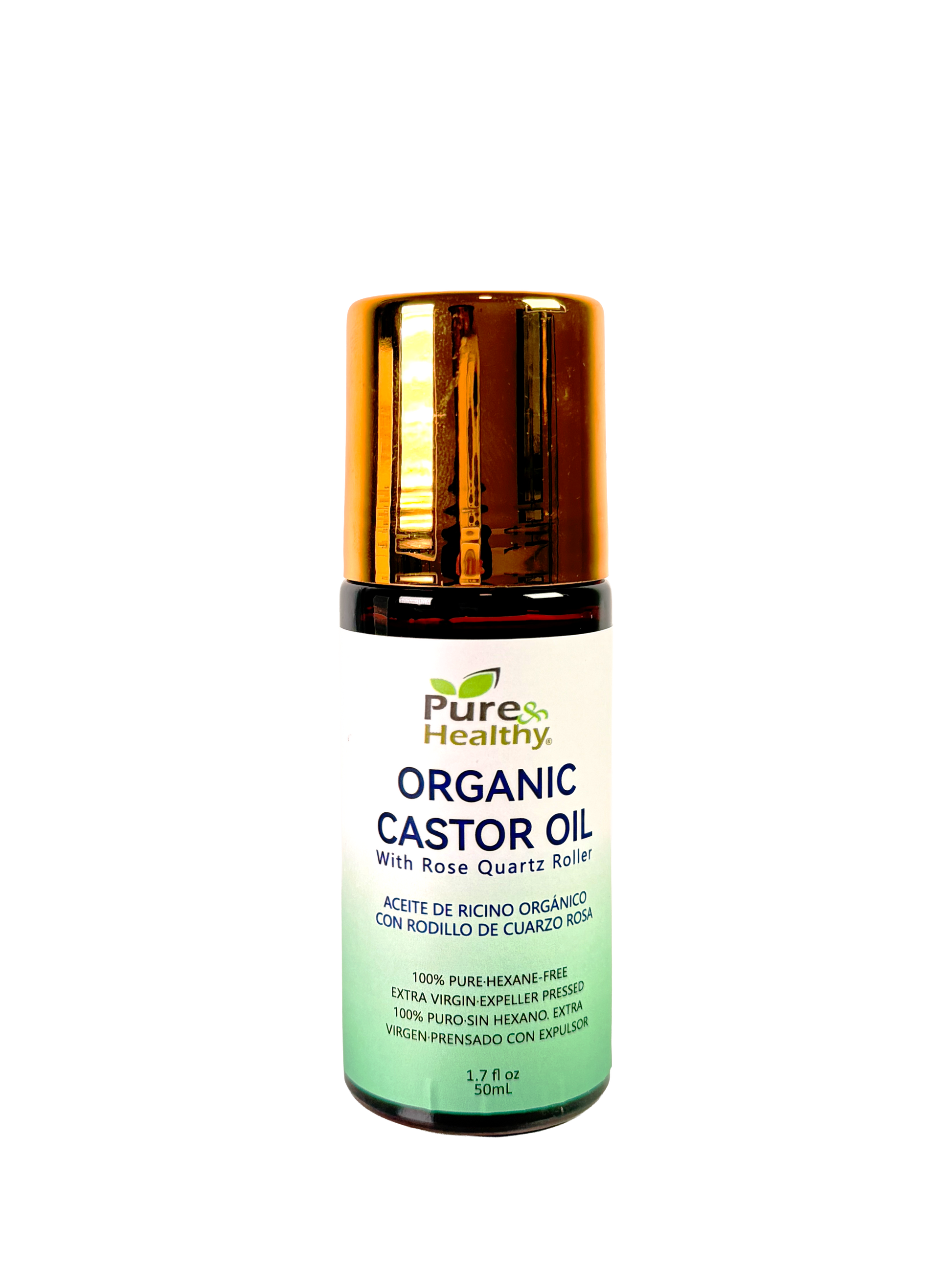 Organic Castor Oil with Rose Quartz Roller – Pure & Healthy